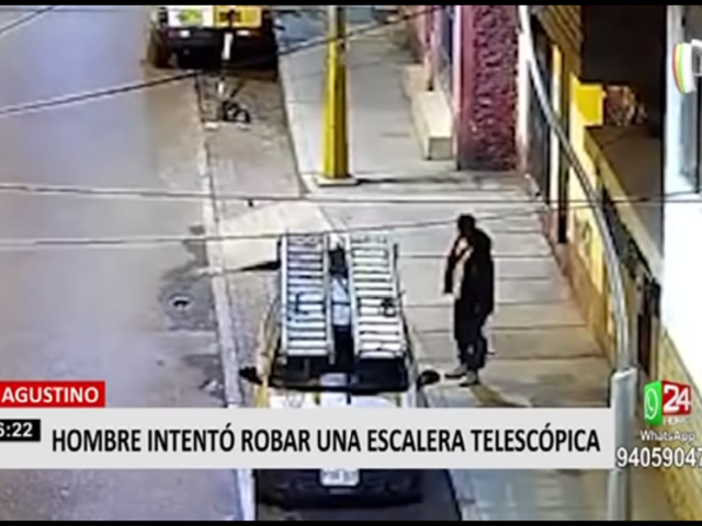 Serenos de El Agustino capturaron a un ladrón que intentó robarse una escalera telescópica que estaba encima de un vehículo estacionado, en el jirón San Carlos.