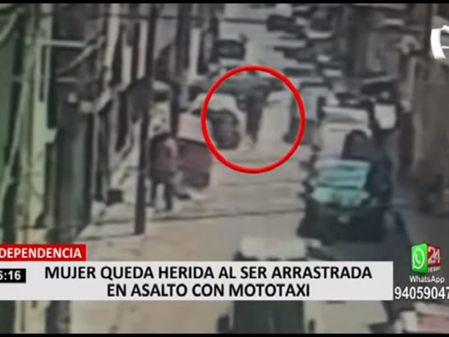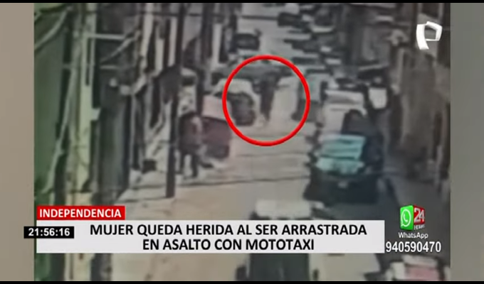 El jirón Ramón Castilla, en el distrito de Independencia, fue escenario de un robo a una mujer, quien fue arrastrada al menos 15 metros por unos ladrones que se desplazaban a bordo de una mototaxi. El hecho quedó registrado por una cámara de seguridad.