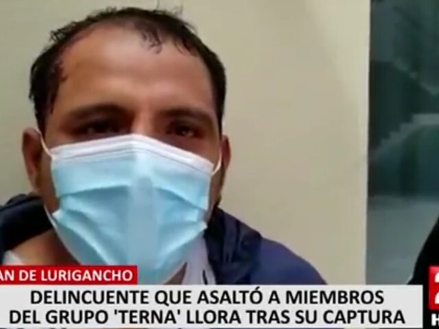 Un sujeto dice estar arrepentido y hasta llora y agradece porque la policía le da una nueva oportunidad, minutos después de haber asaltado a dos agentes terna que se encontraban el paradero de Huáscar el distrito de San Juan de Lurigancho.