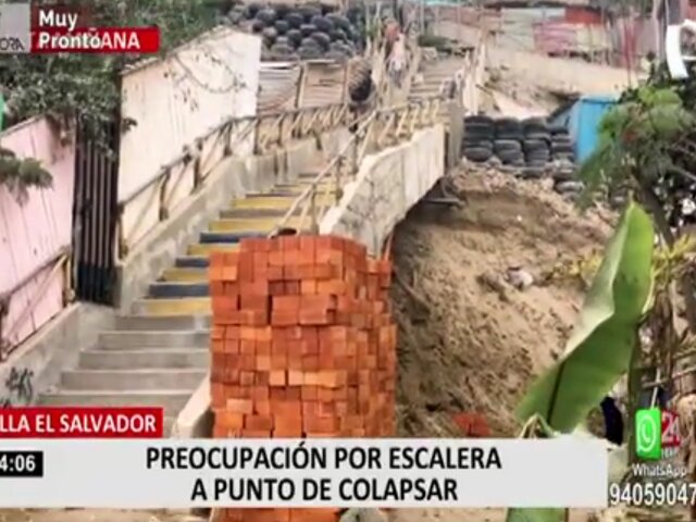 Los vecinos del asentamiento humano La Encantada, ubicado en Villa El Salvador (VES), exhortaron a las autoridades que los apoyen para arreglar una escalera que podría colapsar en cualquier momento, pues parte de la estructura se sostiene prácticamente en el aire.