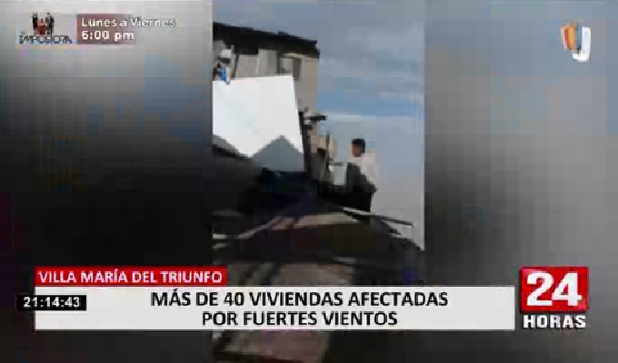 Más de 40 viviendas del asentamiento humano Cerro Centinela, ubicado en el distrito de Villa María del Triunfo (VMT), resultaron con daños tras fuertes vientos registrado el último lunes.