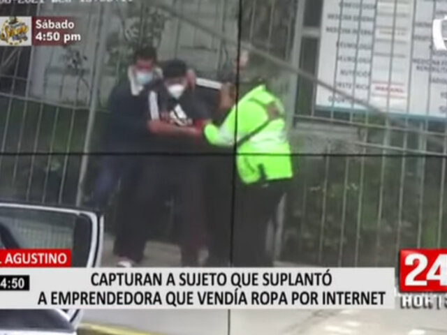 Cámaras de seguridad de la Municipalidad del Agustino registró el preciso momento en el que la policía y serenazgo intervinieron a un sujeto, que se encargaba de estafar por redes sociales, utilizando la marca de una joven emprendedora.