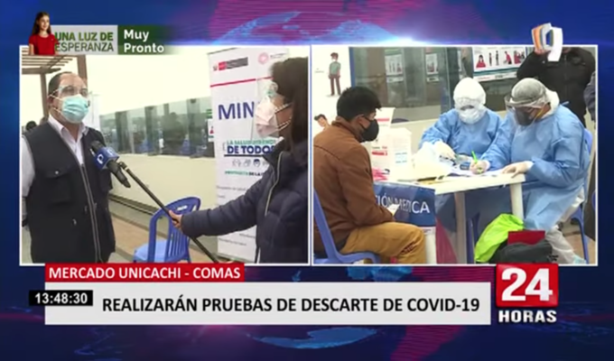 Comas: realizan pruebas de descarte de la COVID-19 en mercado Unicachi