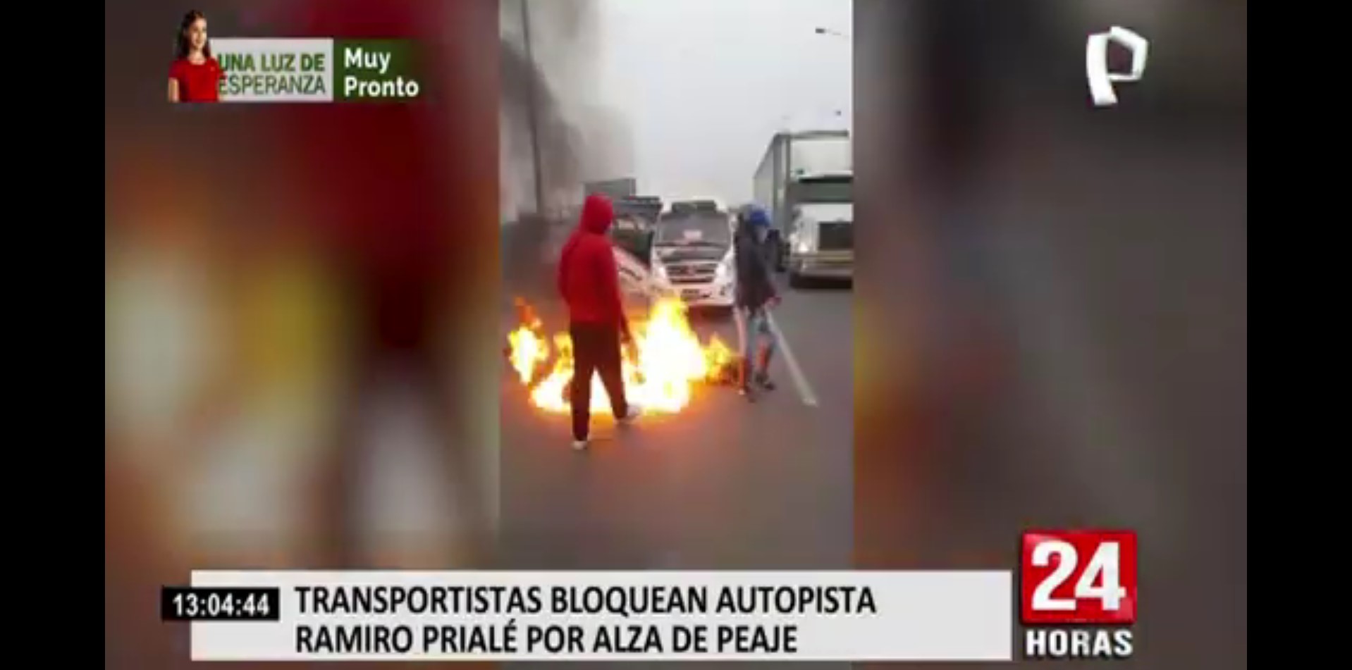 Transportistas bloquean autopista Ramiro Prialé por alza de peaje