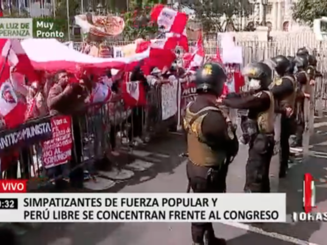 Simpatizantes de Fuerza Popular y Perú Libre se concentran fuera del Congreso