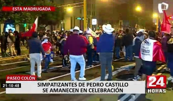 Tras la proclamación de Pedro Castillo como presidente de la República, alrededor de 300 simpatizantes del candidato electo de Perú Libre pasaron la noche en la cuadra 5 de la avenida paseo Colón.