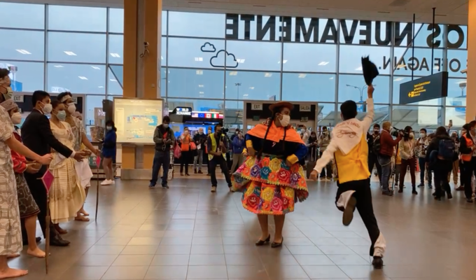 El aeropuerto Jorge Chávez también se unió a los festejos por el Bicentenario del Perú y que de la mano de la Asociación Cultural Somos Romero Paiva rindieron homenaje con bailes típicos de la costa, sierra y selva de nuestro país.
