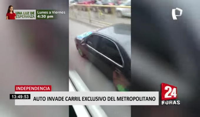 Un usuario del Metropolitano captó con su móvil cómo el conductor de un auto invadió el carril exclusivo de este servicio de buses, cerca a la UNI.