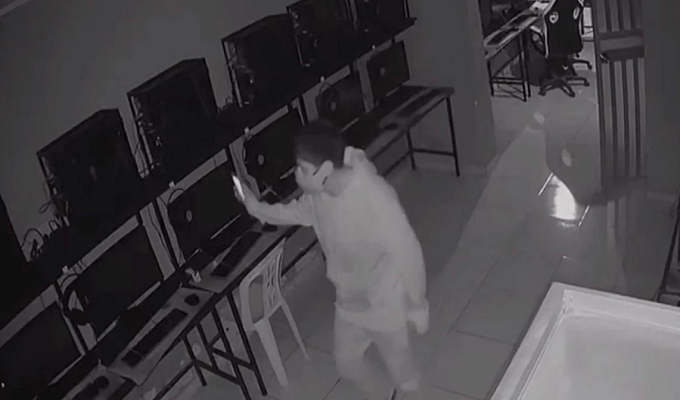 De acuerdo a las imágenes de la cámara de seguridad del local, con total agilidad, los criminales desconectaban rápidamente los equipos y los entregaban a sus cómplices que los esperaban afuera, ellos tenían un vehículo preparado para embarcar el botín y llevárselo a un destino desconocido.