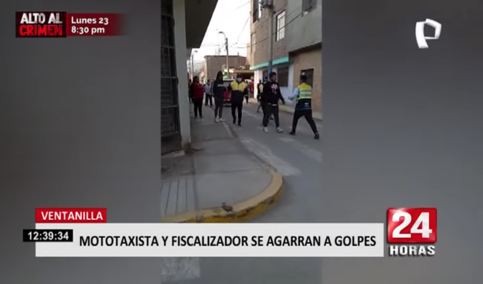 Un mototaxista y un fiscalizador se agarraron a golpes, en el distrito de Ventanilla, en el Callao, luego que intervinieran a la unidad porque aparentemente no contaba con permiso de circulación.