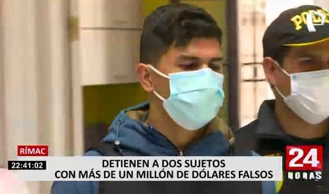 Agentes de la Policía Nacional del Perú (PNP) capturaron a dos integrantes de la banda ‘Los Chuecos del Rímac’, en cuyo poder se halló un millón de dólares falsos.