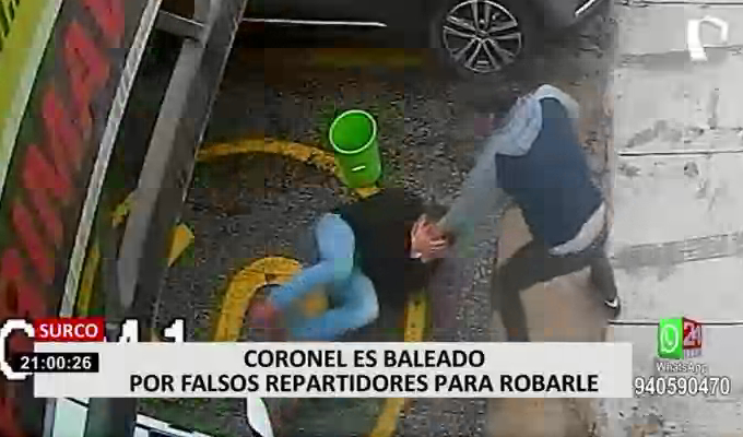 Un coronel en retiro de las Fuerzas Armadas (FF.AA.) terminó golpeado y baleado en una de sus piernas al resistirse al robo de su reloj de oro, en inmediaciones de la Av. Primavera, en Surco. El hecho ocurrió cuando se encontraba esperando la entrega de su vehículo en los exteriores de un taller mecánico.