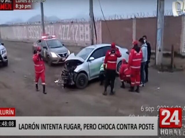 El hecho ocurrió en Lurín, un ladrón intentó fugarse a bordo de un auto, en el intento termino despistándose y estrellando contra un poste de alumbrado público en la antigua Panamericana Sur.
