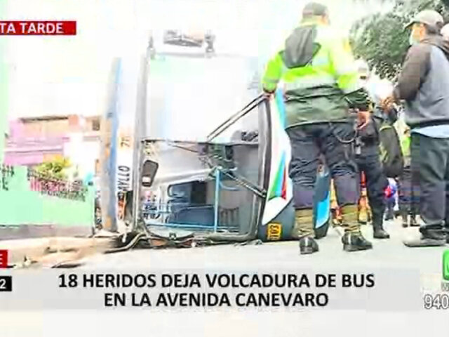 Una cúster se volcó tras chocar con un bus de transporte público en el cruce de la avenida Canevaro y el jirón Alberto Alexander en Lince, dejando como saldo una docena de personas heridas, entre ellos tres menores de edad y un hombre fue trasladado de gravedad a la clínica San Felipe.