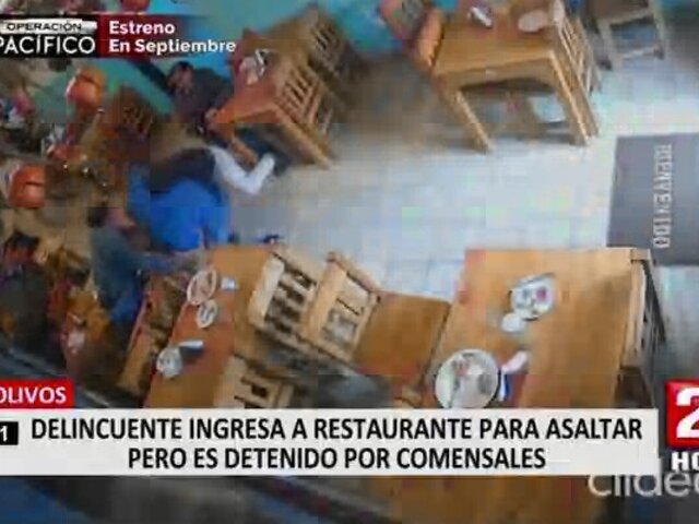 Un delincuente que intentó perpetrar un robo en un restaurante en la urbanización Pro de Los Olivos, fue capturado. El malhechor ingresó con el casco puesto al lugar para evitar ser reconocido, y con arma en mano amenazó a dos comensales, quienes horas antes habían retirado la suma de 17 mil soles en una entidad bancaria.