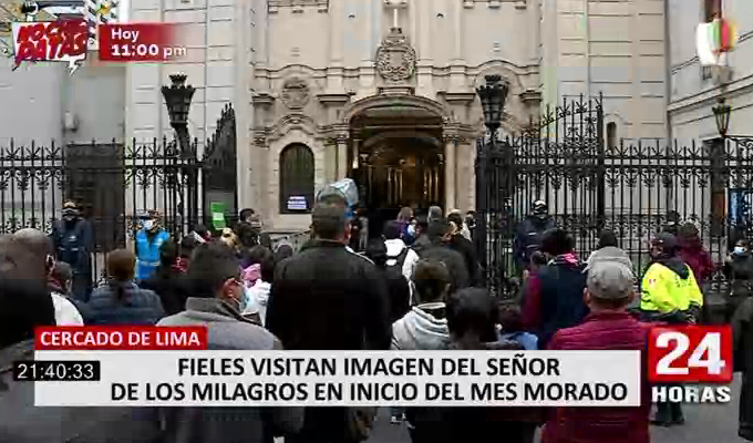 Movidos por su fe hacia el llamado Cristo Morado, cientos de fieles, procedentes de diversas partes de la capital, formaron largas colas en el jiron Huancavelica para poder ingresar a misa.