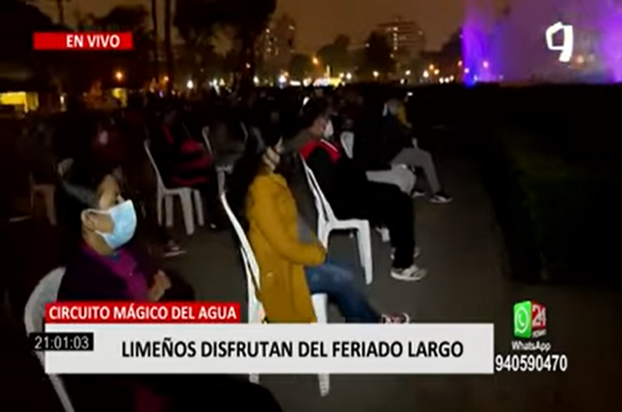 Diversas familias acudieron durante la tarde y la noche al Circuito Mágico del Agua, mientras que los más jóvenes pasaron la tarde y noche en el distrito de Barranco.