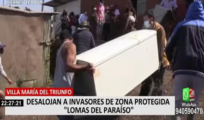 Más de 120 policías y personal de la Municipalidad de Lima, desalojaron a los invasores del sector Vista Alegre, ubicado en las lomas de paraíso, en Villa María del Triunfo.