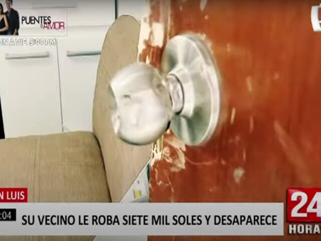 Dandy Rosales Roque, un trabajador de informática que alquila un cuarto en una vivienda ubicada en San Luis, denunció que Sergio Arteaga, un sujeto de nacionalidad venezolana, quien también alquila una habitación en el mismo predio, lo amenazó y le robó 7 mil soles, debido a un ataque de celos.
