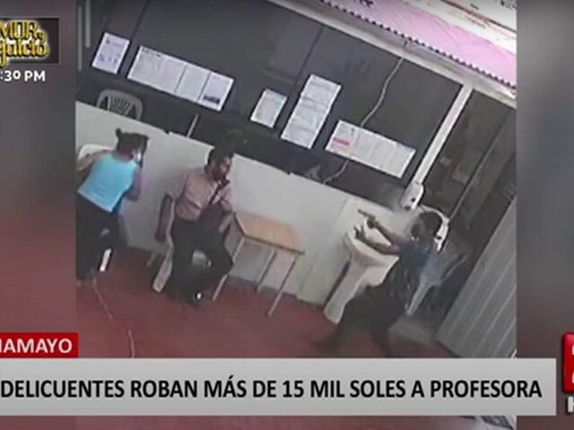 Cámaras de seguridad del distrito de Pichanaqui, en Chanchamayo, registraron el momento en que unos delincuentes le arrebataron más de 15 mil soles a una profesora que acaba de retirar su AFP.