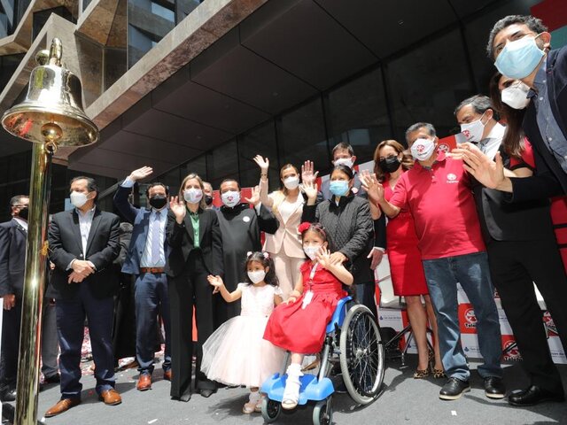 La presidenta del Congreso, María del Carmen Alva, participó hoy en el tradicional campanazo que da inicio a la Teletón 2021, en la Bolsa de Valores de Lima (BVL). En su mensaje, pidió a los ciudadanos y empresas sumarse a esta cruzada de apoyo a los niños de la Clínica San Juan de Dios.