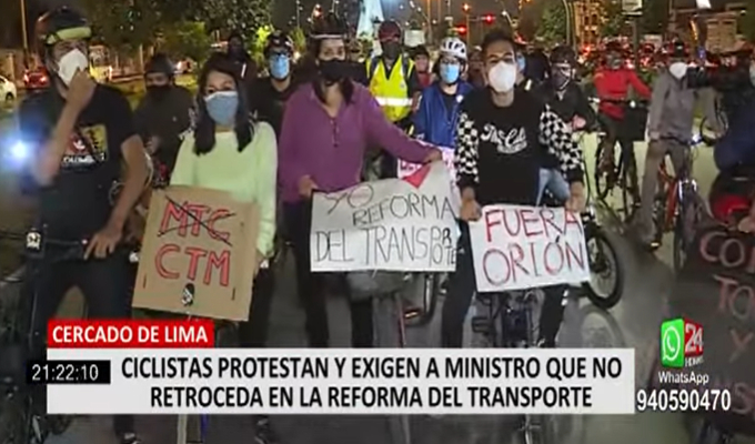 La noche del viernes, ciclistas llegaron hasta los exteriores del Ministerio de Transporte y Comunicaciones para exigir al ministro que no retroceda en la reforma del transporte.