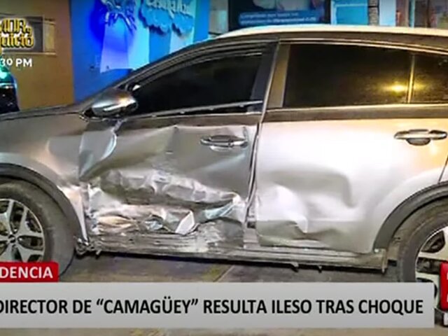 Integrantes de la conocida orquesta “Camagüey” iban a bordo de la camioneta conducida por su director Adolfo Menacho, cuando fueron impactados de manera intempestiva por el lado del piloto, por este auto de color azul que terminó destrozado.