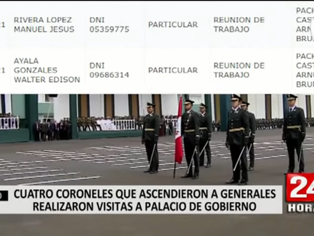 Según reveló el diario El Comercio, el coronel Manuel Rivera López acudió a la oficina de Pacheco el 28 de octubre, donde también estuvo el exministro de Defensa, Walter Ayala. Este último sábado se conoció que Rivera López logró ascender al grado de general.