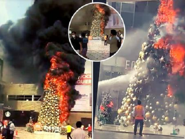 La temporada navideña en el centro comercial Jockey Plaza, empezó con un árbol de navidad que ardía en llamas, por fortuna el fuego pudo ser controlado rápidamente por el personal de seguridad del lugar.