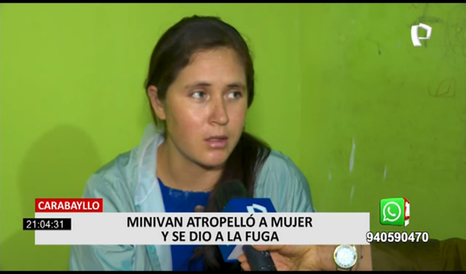Con una grave lesión en la pierna terminó Melva Sánchez (29) luego de ser brutalmente atropellada por una minivan en el distrito de Carabayllo.
