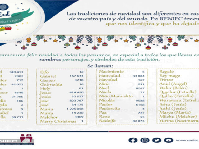 No hay duda que la creatividad de los Peruanos no tiene límites, a un día se celebrarse la fiesta de Navidad, el Registro Nacional de Identidad y Estado Civil (Reniec) compartió en las redes sociales una lista de los nombres de peruanos alusivos a esta festividad.
