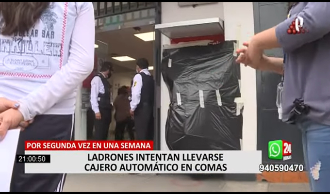 Esta madrugada, delincuentes forcejearon un cajero automático haciendo uso de una varilla para romper la luna de seguridad y así extraer el dinero. Este hecho ocurrió en la cuadra 4 de la avenida Belaunde, en Comas.