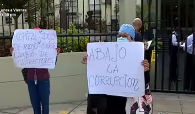 Por esa razón, un grupo de trabajadores del hospital protestó este jueves frente al Ministerio de Salud exigiendo la destitución de la directora del Hospital Dos de Mayo, Rosario Kiyohara.