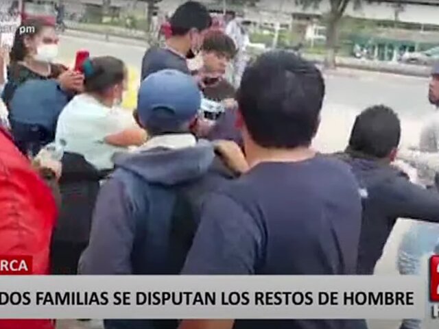 Se agarraron a golpes frente a la morgue de Cajamarca. Patadas, puñetes y hasta correazos, todo era válido en esta pela callejera protagonizada por dos familias que se disputaban el cadáver de un hombre.