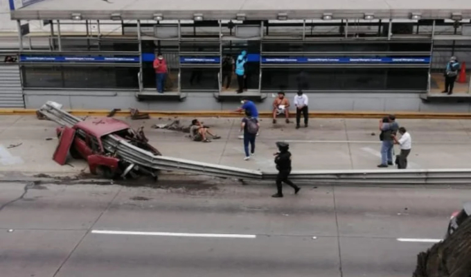 En el vehículo se trasladaban dos personas que se salvaron de morir, ya que una de las barandas de seguridad que divide la Vía Expresa de la pista exclusiva del Metropolitano terminó incrustado sobre el lado del copiloto.