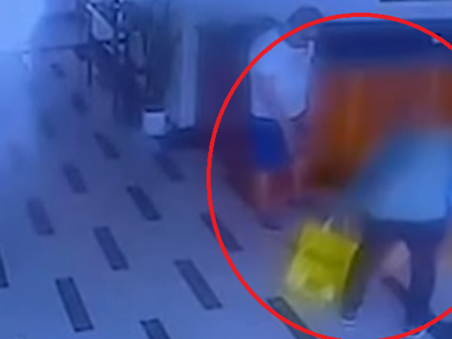 De acuerdo a las imágenes de las cámaras de seguridad en una acera se ve caminando con un bolso en la mano a un hombre, tras él se aproximan dos asaltantes, uno a pie, que acelera el paso para alcanzar a su víctima y otro en una motocicleta haciéndose pasar por un repartidor.