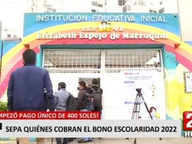 El pago del bono escolaridad 2022 se dará de acuerdo al cronograma del Banco de la Nación para el presente mes de enero. Cabe precisar que si usted no cuenta con el tiempo de antigüedad de servicio de 3 meses mínimo, se le abonará en forma proporcional a los meses y días laborados.