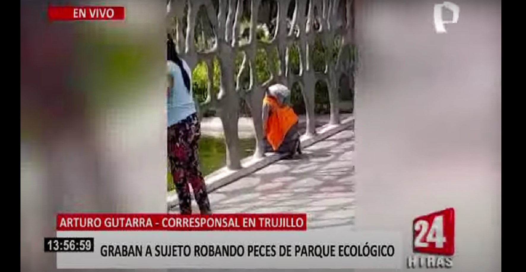 Trujillo: captan a sujeto robando peces de parque ecológico