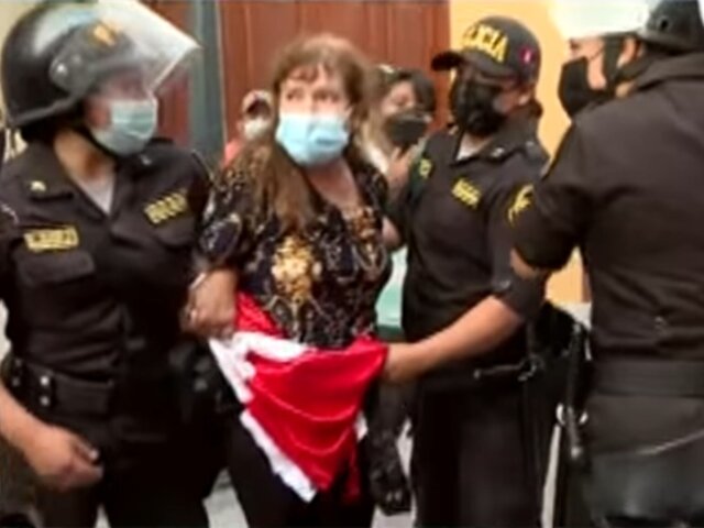 La exministra de mujer, Nidia Vílchez, quien se encontraba en la marcha y que terminó en el piso tras un alboroto, señaló que la adulta mayor y el joven tendrán que permanecer detenidos injustificadamente hasta que llegue la fiscal de turno para tomar sus manifestaciones.