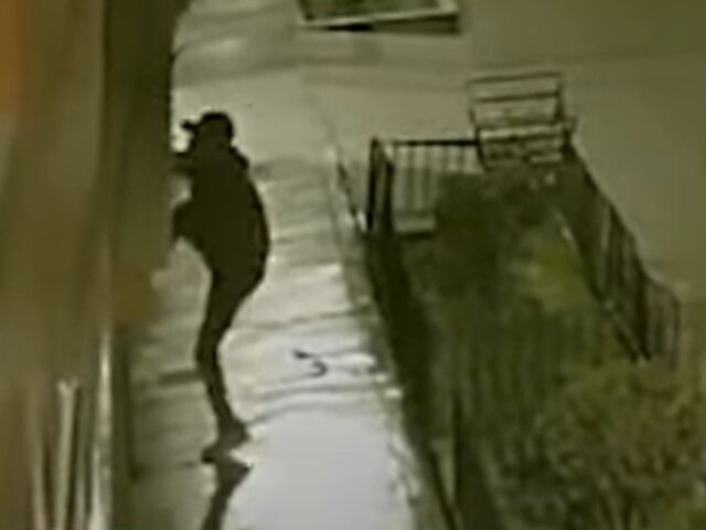 Las cámaras de seguridad registraron cómo el delincuente llega hasta la zona y rápidamente identifica el lugar donde cometerá su fechoría. Con gran habilidad se dispone a trepar para luego ingresar por la ventana del segundo piso y sustraer el aparato tecnológico.
