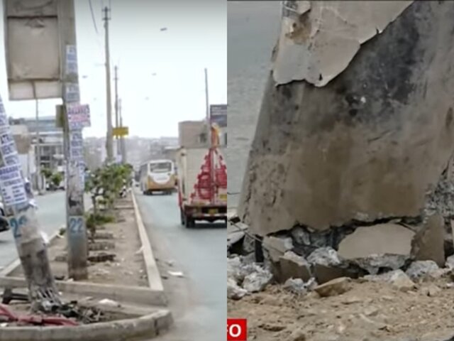 Un poste a punto de caer ubicado en el cruce de la avenida Zarumilla y Lima en Villa María del Triunfo, representa un verdadero peligro para vecinos y transeúntes de esta zona.