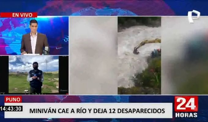 Un vehículo miniván que llevaba más de una decena de pasajeros cayó a un río cuando pasaba por la ruta Ollachea - Macusani, en el departamento de Puno. Producto del incidente, aproximadamente 12 personas se encuentran desaparecidas.
