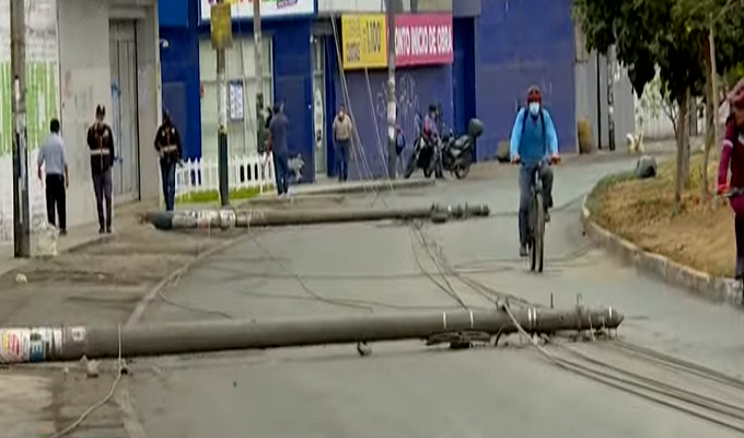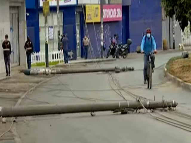 En la vía auxiliar de la avenida Túpac Amaru en el distrito de Independencia cayeron tres postes que provoaron la congestión vehicular. Las cámaras de seguridad registraron la caída de los postes a las 5:38 p.m. (de la tarde) del último domingo, sin embargo, estos postes permanecieron tirados hasta el lunes.