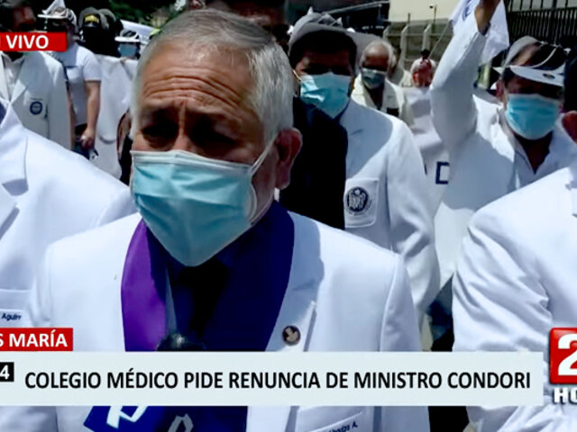Un centenar de médicos se han reunido, primero en el frontis del Ministerio de Salud y luego marchando a los alrededores exigiendo la destitución inmediata de Hernán Condori en el cargo de ministro de la cartera de Salud, pues consideran que “no reúne las condiciones mínimas para dirigir”.