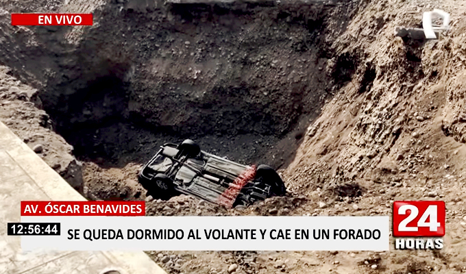 En el Cercado de Lima, un auto cayó en un profundo forado de 8 metros de profundidad, ubicado en la cuadra 53 de la avenida Oscar R. Benavides (antes avenida Colonial). El enorme hueco sería parte de una obra para instalación de tuberías de gas en la zona.