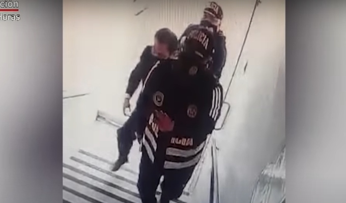 Las cámaras de seguridad del local registraron como estos hombres, que usaban chalecos característicos de la Policía Nacional del Perú, entraban y amenazaban a los trabajadores del spa.