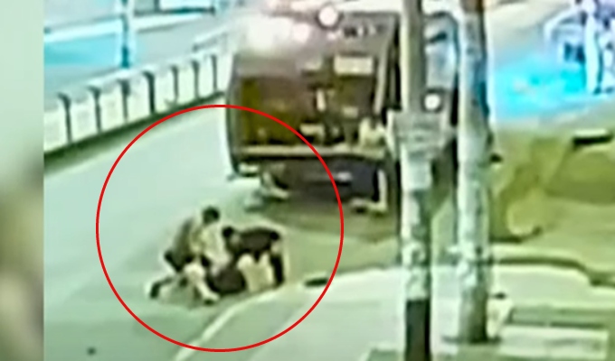 Durante el ataque, llegó un carro recolectar de basura, pero los trabajadores no hicieron nada por defender al joven, segundos después dos mujeres aparecen en escena y solo grabaron el asalto.