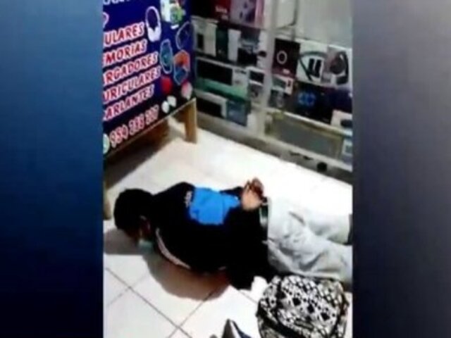 Cámaras de seguridad registraron el momento en que los delincuentes ingresaron rompiendo la puerta al local ubicado en la cuadra dos de la avenida Miguel Iglesias en SJM.