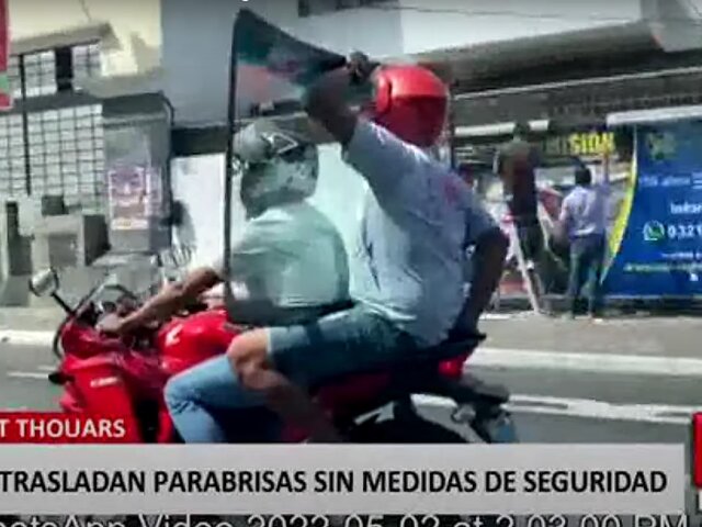 ¡Total imprudencia!: Motorizados transportan parabrisa sin ninguna medida de seguridad