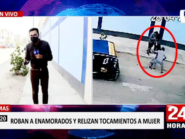 En Comas, desde la zona de Santa Luzmila, en la avenida José Angulo, se reportó un robo a dos enamorados. La pareja caminaba por la vereda cuando pasó un mototaxi por la avenida y, al observarlos, regresó hasta donde se encontraban. Bajaron sacando sus armas, uno de ellos fue donde la joven, le realizó tocamientos indebidos y, luego, su cómplice atacó al joven a quien le quitaron la billetera y los celulares.